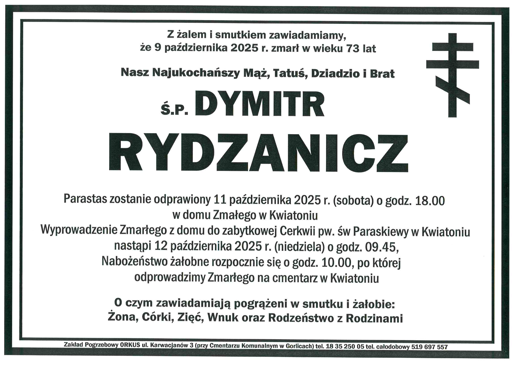 Pana Dymitra Rydzanicza – wieloletniego Wójta Gminy Uście Gorlickie w latach 2001-2018.