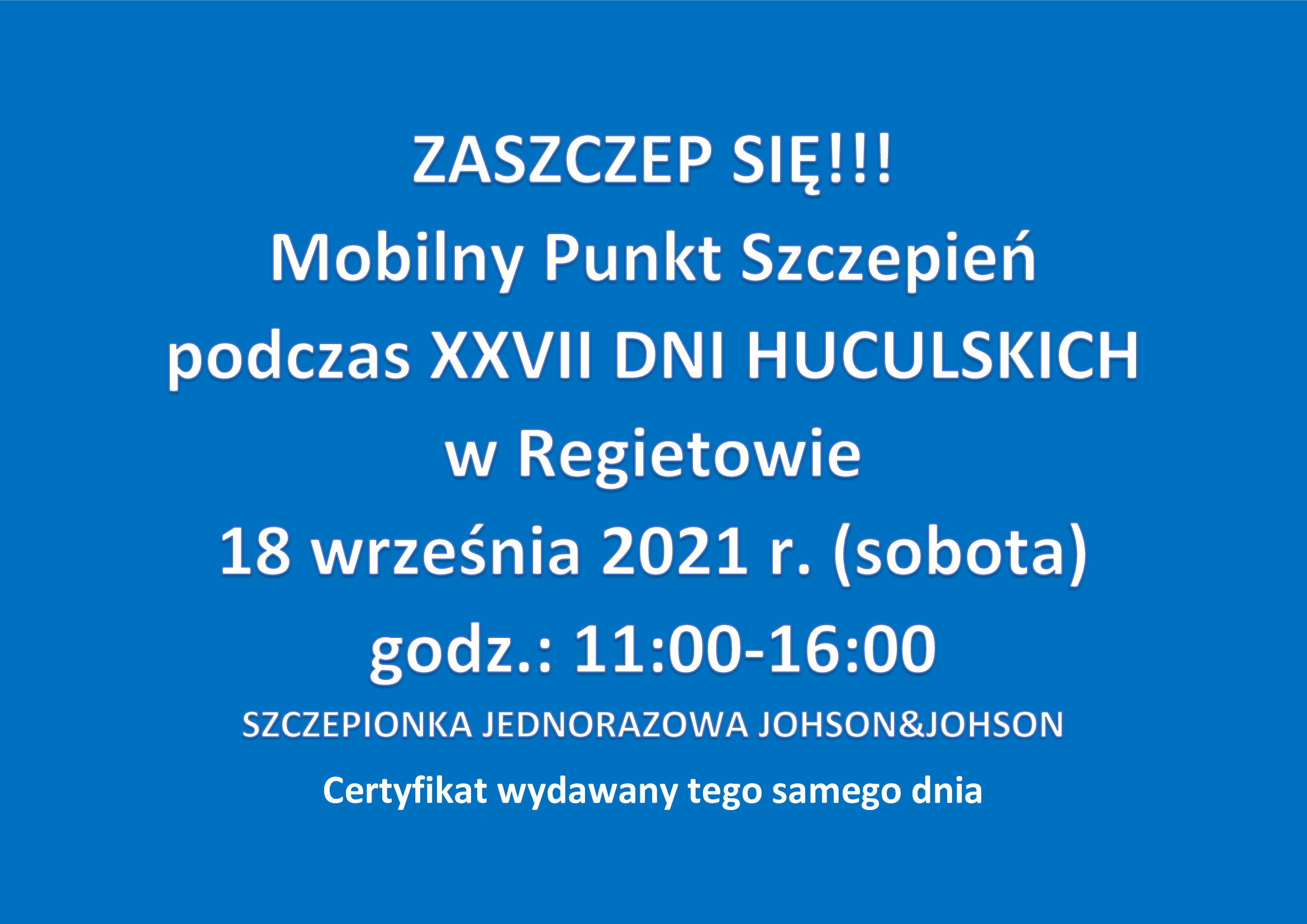 Informacja o szczepieniu podczas Dni Huculskich