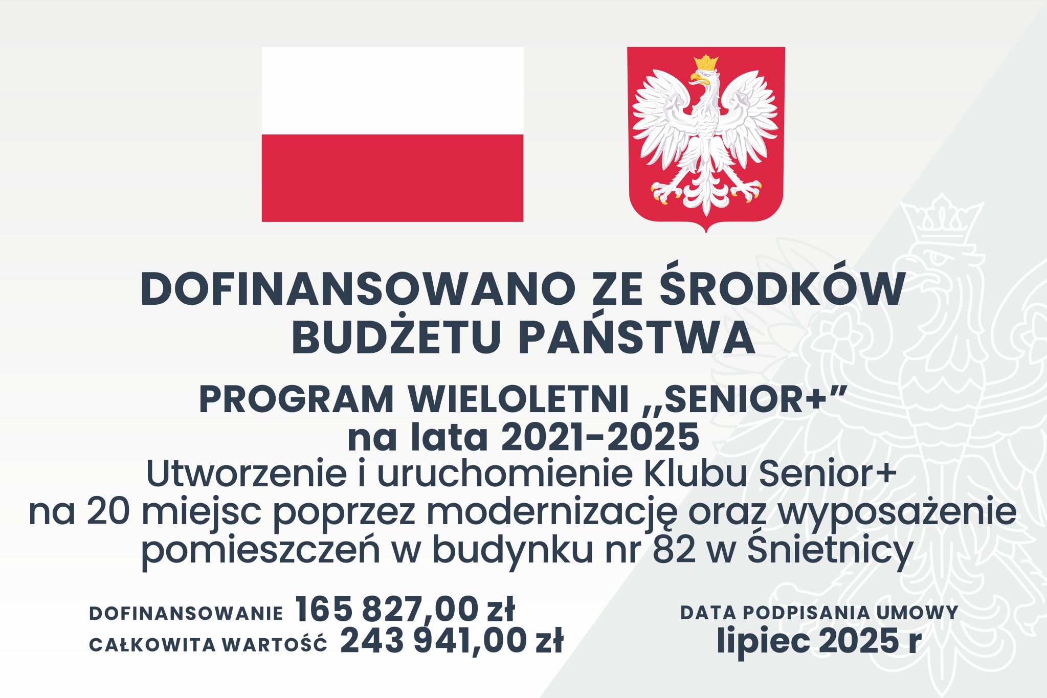 Całkowita wartość inwestycji to 243 941 zł, w tym dofinansowanie z Budżetu Państwa 165 827,00 zł.