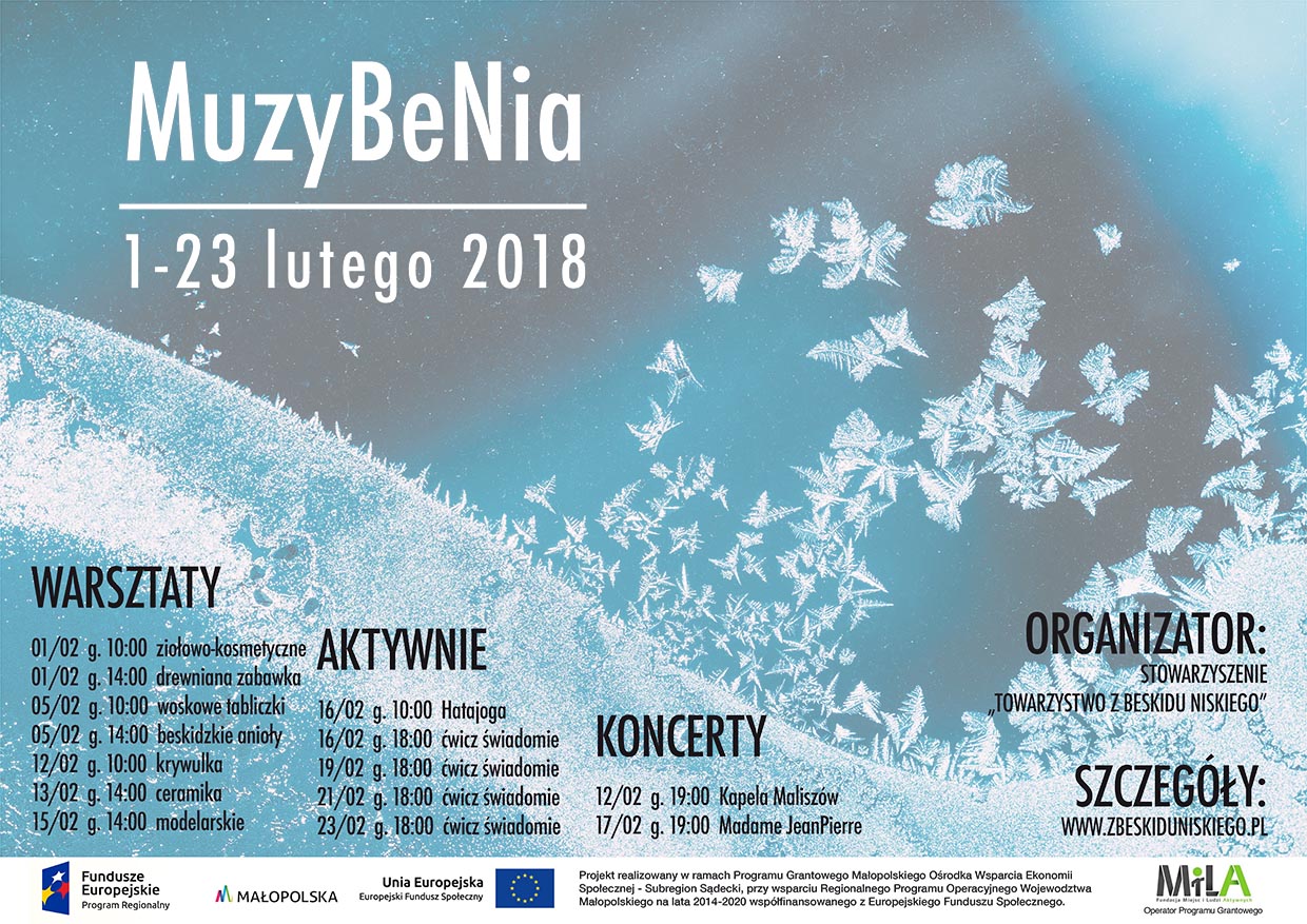 Stowarzyszenie Towarzystwo z Beskidu Niskiego zapraszamy na koncerty i warsztaty w ramach projektu "Muzy BeNia – Festiwal TUTEJSZOŚCI Beskidu Niskiego".