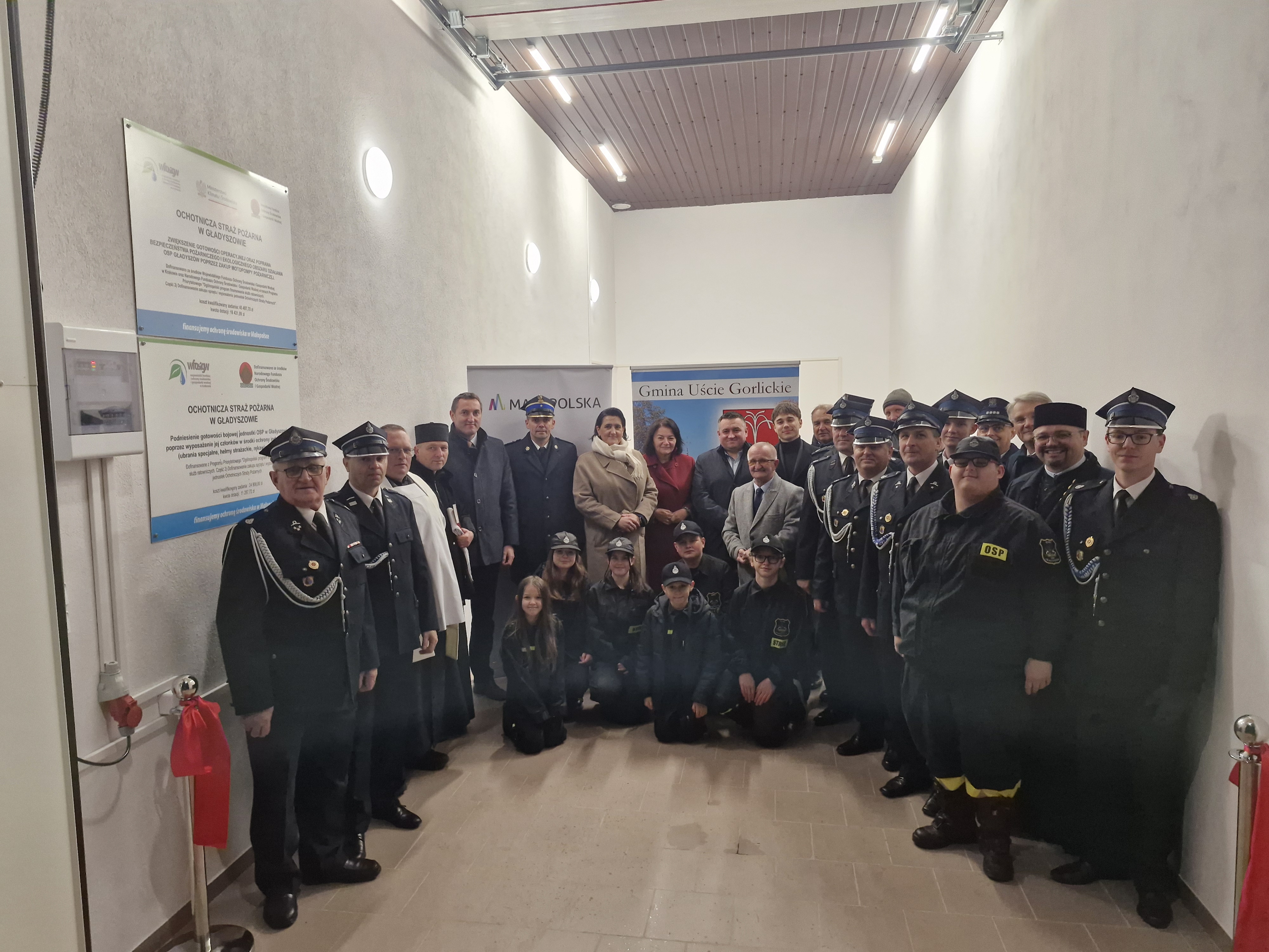 W dniu 20 listopada 2025r odbyło się uroczyste otwarcie przebudowanego obiektu garażowego przy remizie Ochotniczej Straży Pożarnej w Gładyszowie.
