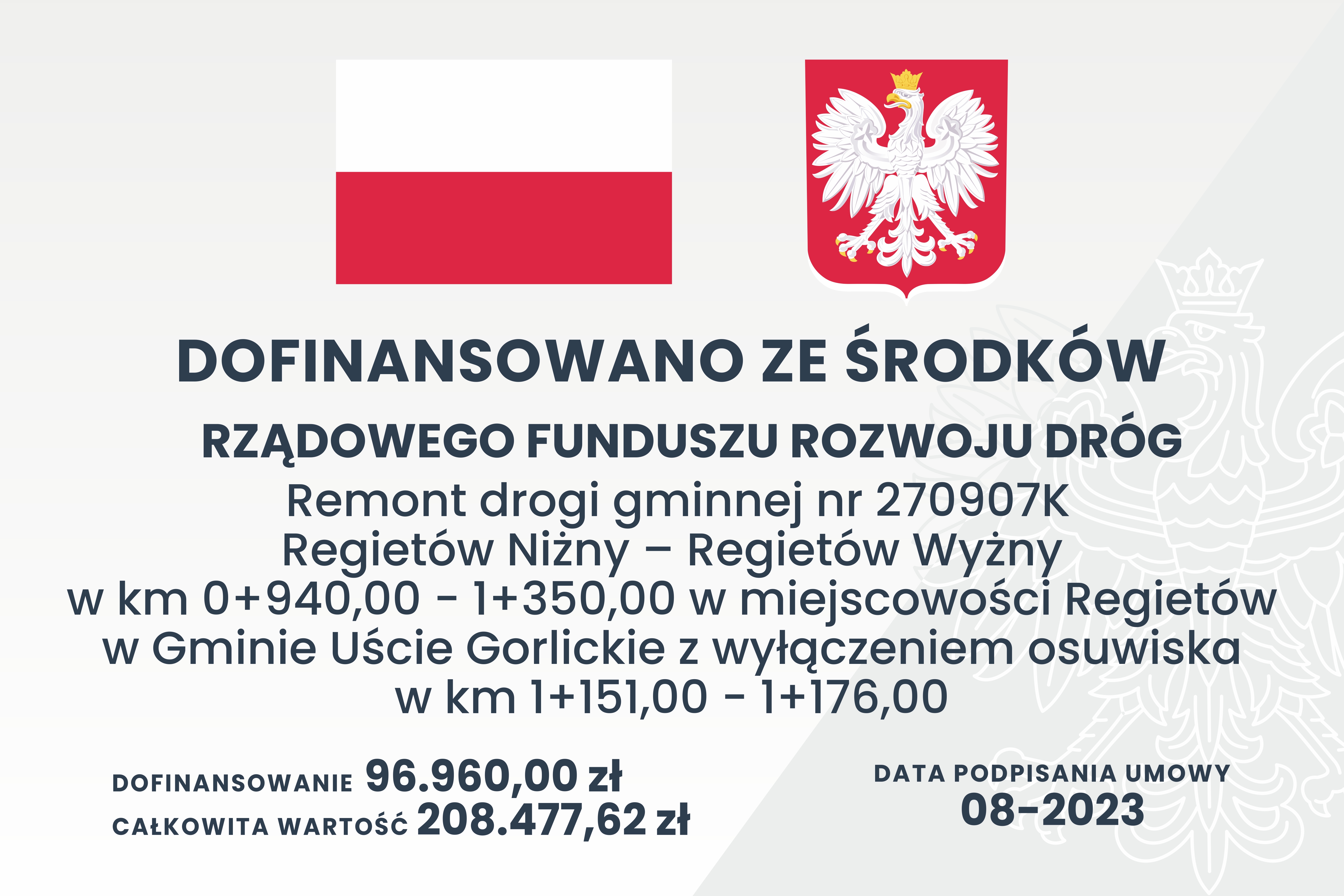 W ramach projektu wykonano nową nawierzchnię asfaltową na dł. 410m. Celem projektu była poprawa stanu technicznego infrastruktury drogowej dla polepszenia dostępności lokalnej społeczności do instytucji świadczących usługi publiczne w zakresie zdrowia, bezpieczeństwa, edukacji, opieki, administracji (POZ, Straż Pożarna, Policja, szkoła, przedszkole, urząd gminy) oraz pozostałych obiektów użyteczności publicznej (m.in. obiekty kultu religijnego, biblioteka i GOK). Remont zrealizowano w okresie 10.10. – 10.11.2023 r.