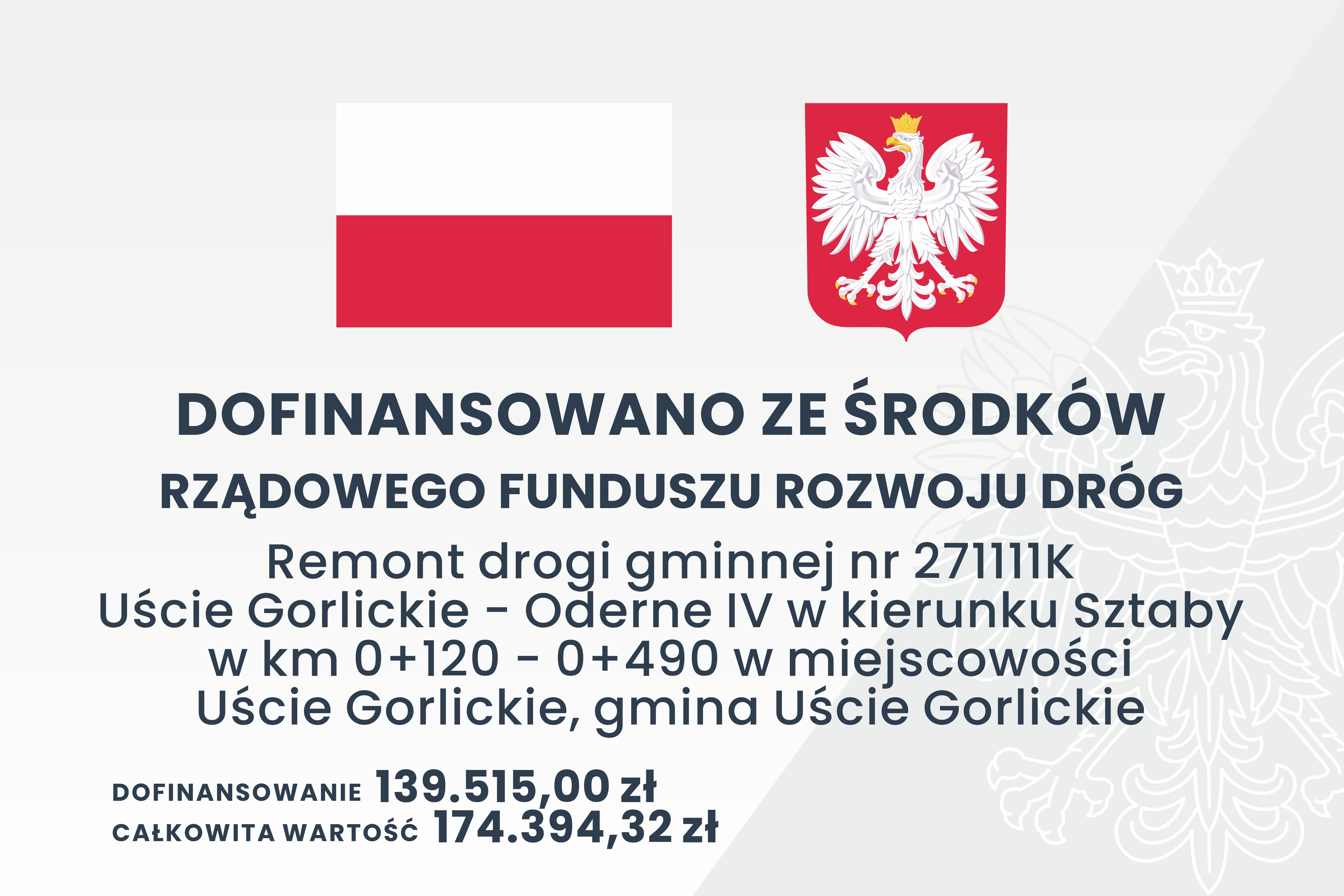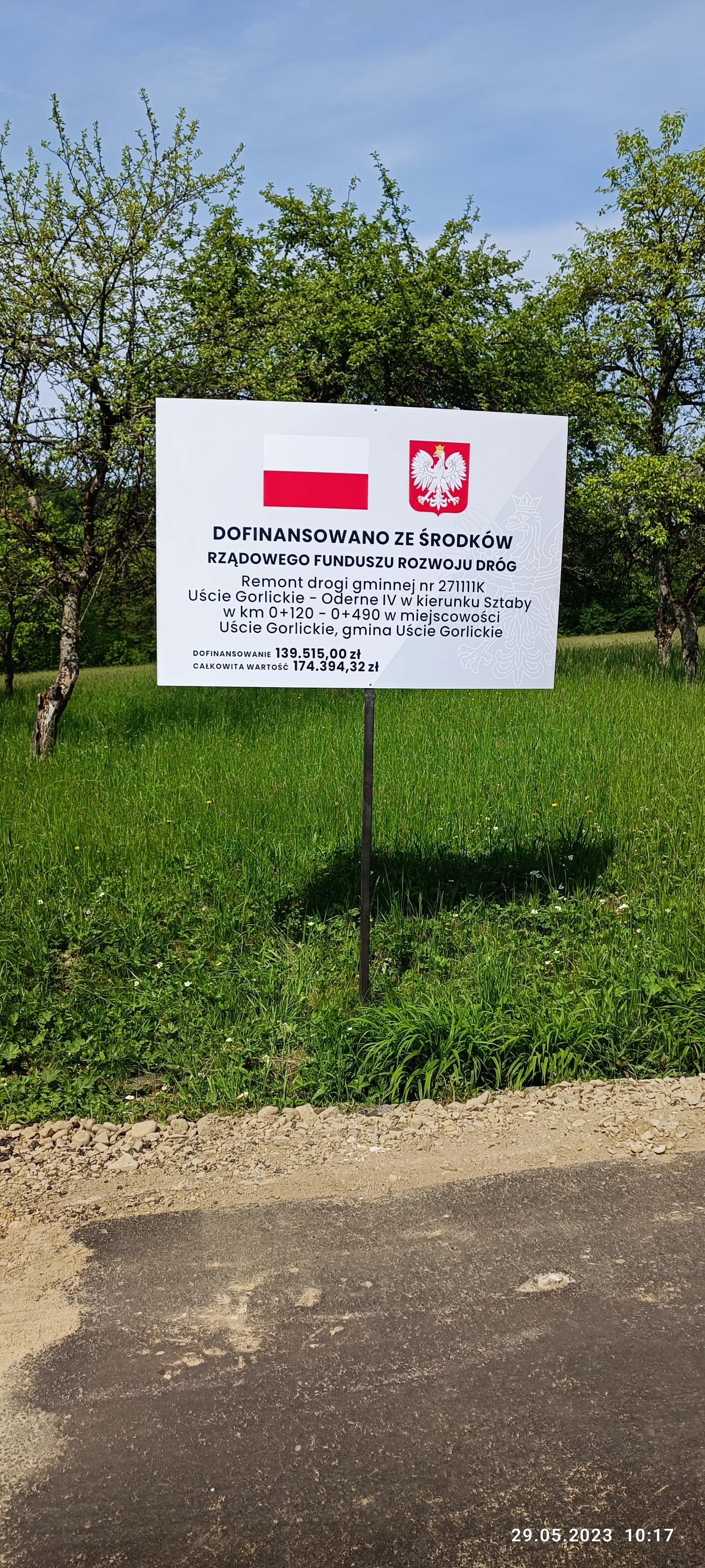 W ramach projektu wykonano nową nawierzchnię asfaltową na dł. 370m. Celem projektu była poprawa stanu technicznego infrastruktury drogowej dla polepszenia dostępności lokalnej społeczności do instytucji świadczących usługi publiczne w zakresie zdrowia, bezpieczeństwa, edukacji, opieki, administracji (POZ, Straż Pożarna, Policja, szkoła, przedszkole, urząd gminy) oraz pozostałych obiektów użyteczności publicznej (m.in. obiekty kultu religijnego, biblioteka i GOK). Remont zrealizowano w okresie 28.04.-29.05.2023 r.