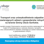 W dniu 30 grudnia 2025 r. Gmina Uście Gorlickie zakończyła realizację zadania pn. „Transport oraz unieszkodliwienie odpadów zawierających azbest z gospodarstw rolnych na terenie Gminy Uście Gorlickie”.