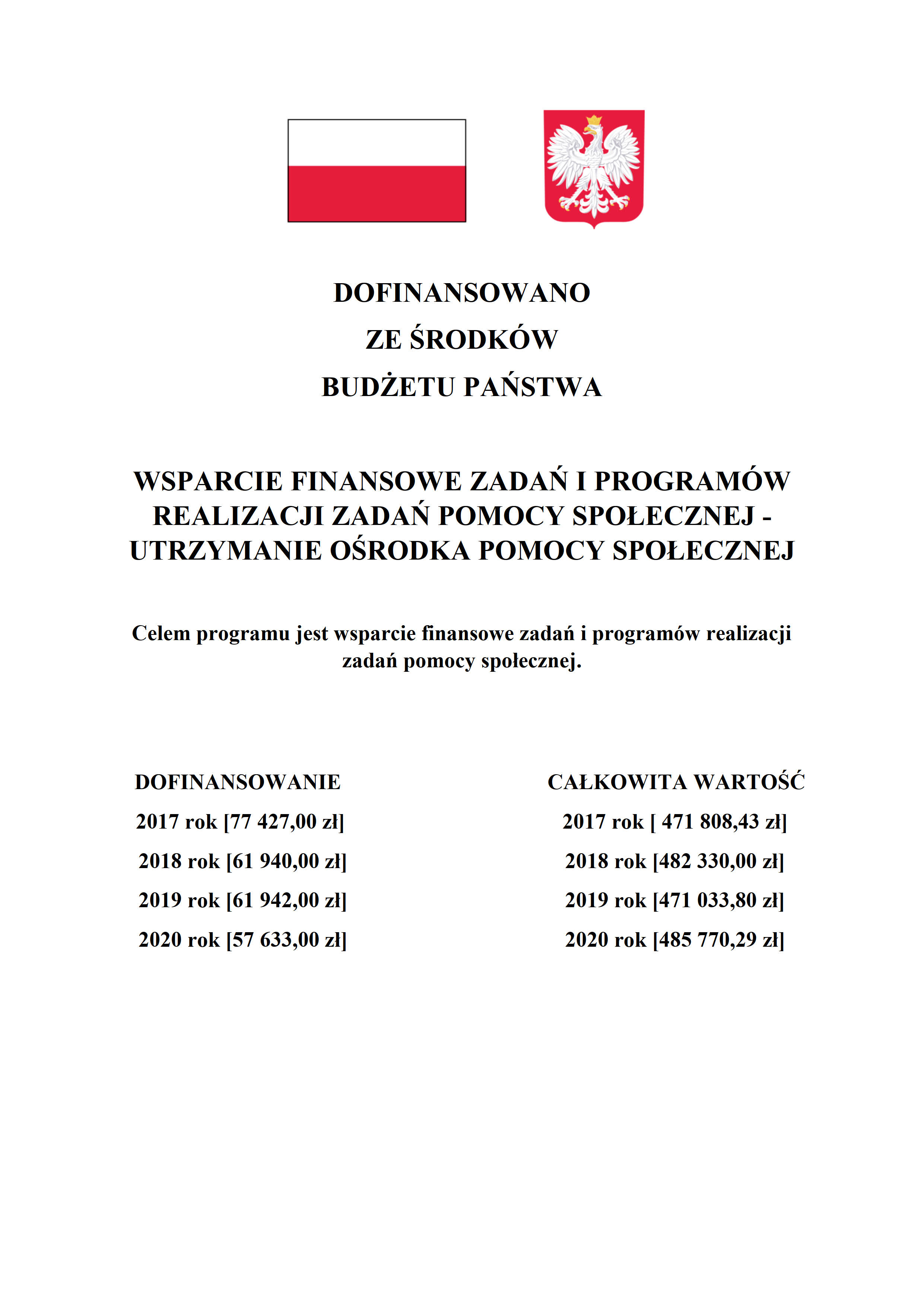 Celem programu jest wsparcie finansowe zadań i programów realizacji zadań pomocy społecznej.
