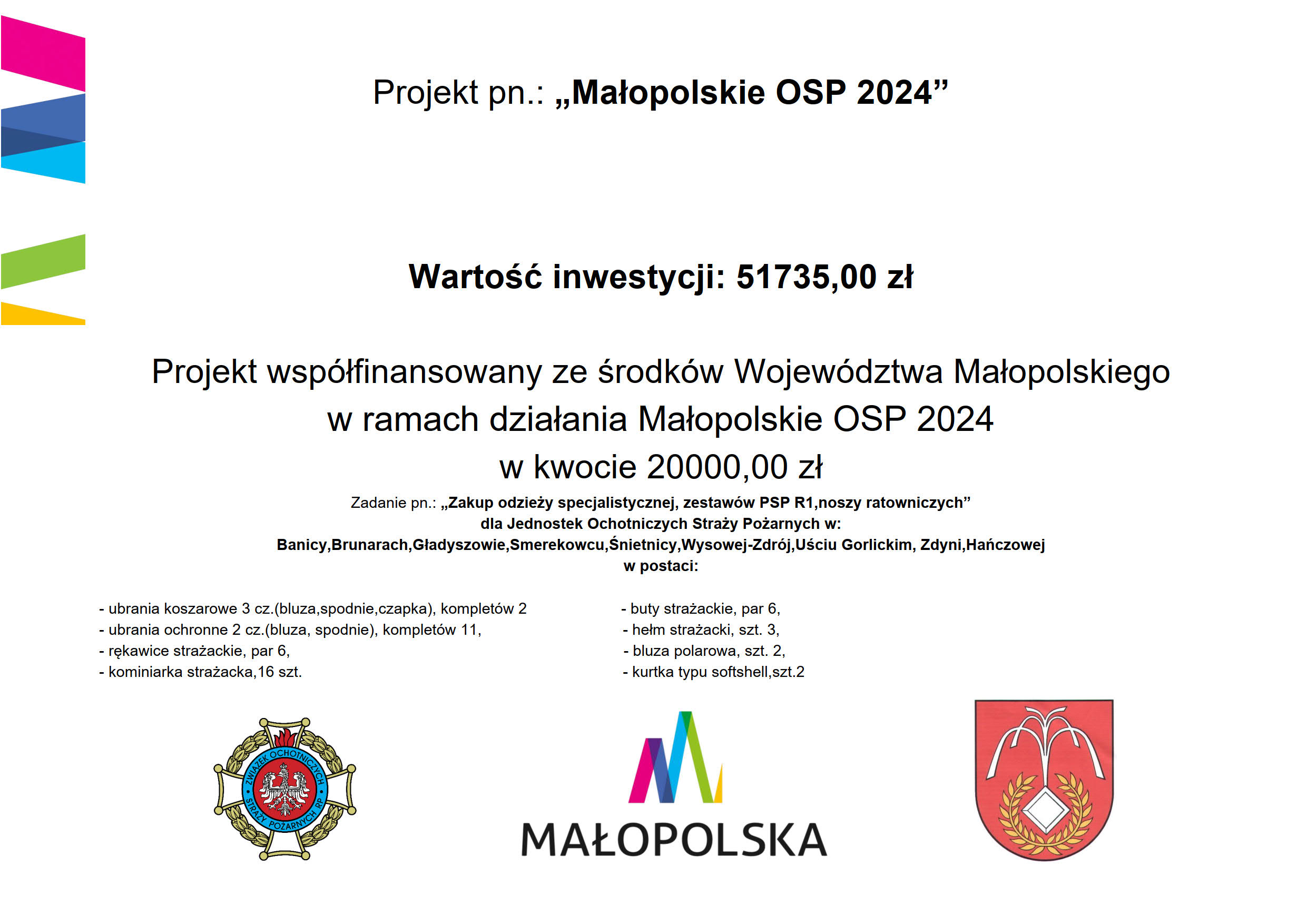 Zakup odzieży specjalistycznej, zestawów PSP R1,noszy ratowniczych” dla Jednostek Ochotniczych Straży Pożarnych w: Banicy,Brunarach,Gładyszowie,Smerekowcu,Śnietnicy,Wysowej-Zdrój,Uściu Gorlickim, Zdyni,Hańczowej