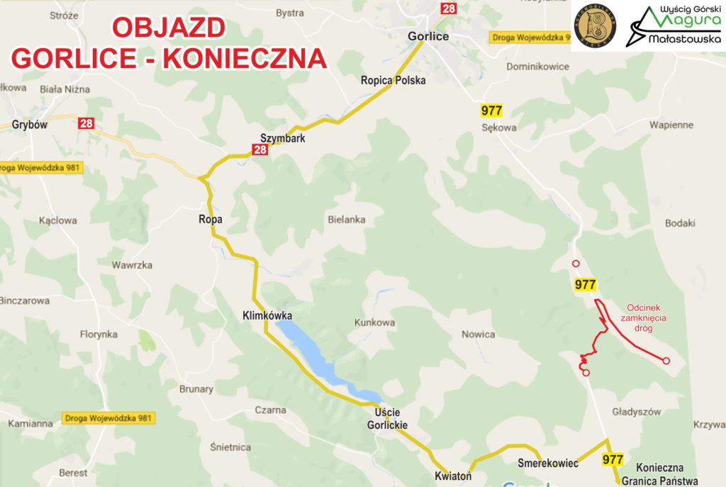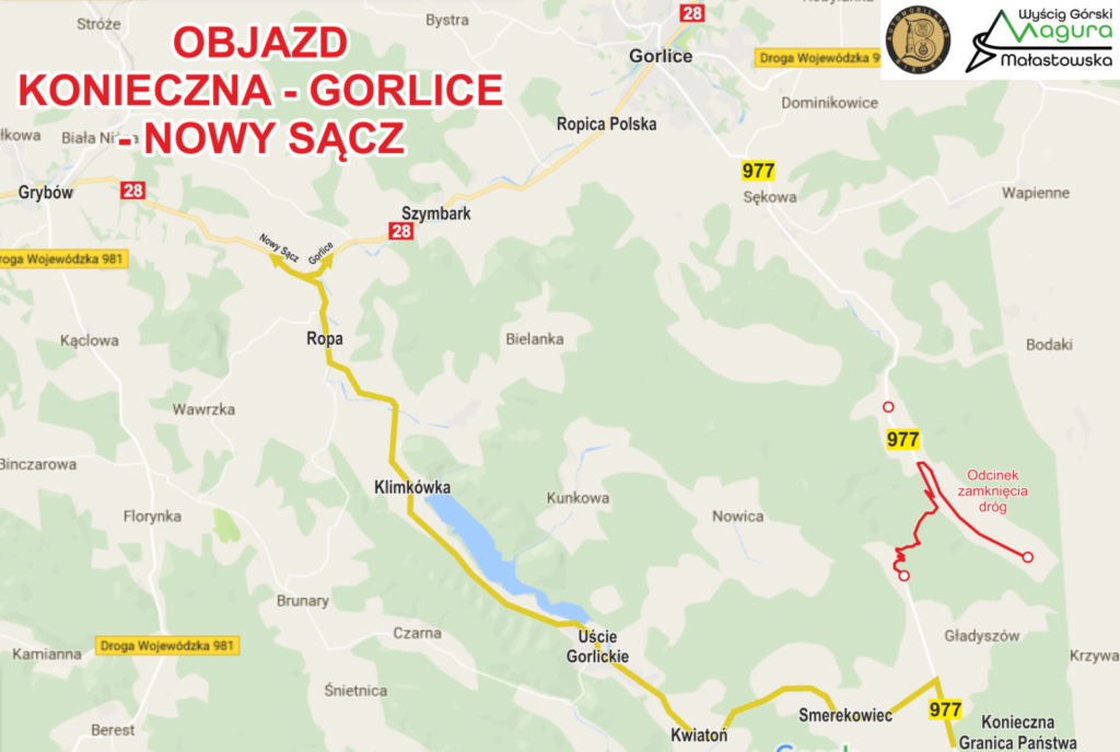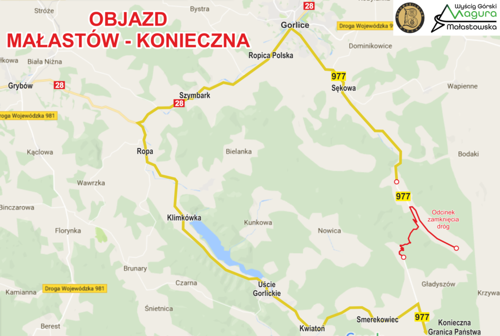 Automobilklub Biecki informuje o zamknięciu drogi wojewódzkiej nr 977 na odcinku w miejscowości Małastów do miejscowości Gładyszów skrzyżowanie Gładyszów/Krzywa w dniach 28-29 czerwca 2025 r. od godziny 6:00 do 21:00 oraz drogi powiatowej nr 1492K od skrzyżowania z drogą wojewódzką nr 977 na odcinku 3200 metrów od dnia 28 czerwca 2025 roku od godz. 6:00 do dnia 29 czerwca 2025 roku do godz. 21:00.